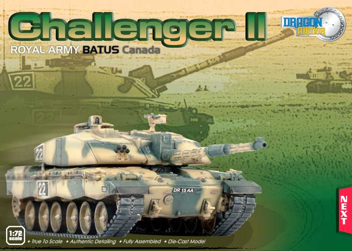 Dragon Models 1/72nd Scale Armor Series Modern Challenger II, Royal Army, BATUS, Canada. Die-cast Metal Construction with Plastic detailed parts, Fully assembled and painted.